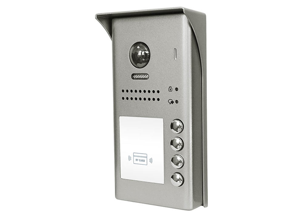 Μπουτονιέρα KIT με 4 μπουτόν και καρταναγνώστη, 2 καλωδίων, κάμερα με ευρυγώνιο φακό 170° fish-eye. Διαστάσεις: 9,5x18cm.